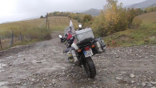 Loučím se s nimi a vyrážím dohnat své přátele. Už na mne čekají u cesty o pár kiláků dál, s cigárkem. Je již dost hodin, potřeba za to trošku vzít, ale na těch děrách to moc nejde. Za dvě hoďky bude tma a my máme před sebou ještě osmdesát kiláků v tomhle bordelu. No co už, hlavně žádný stres a klídek, jede se, až se dojede. Jinak to nejde.