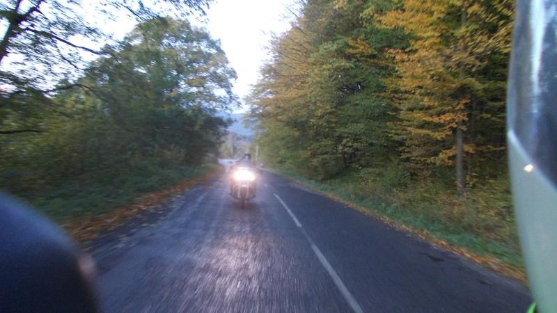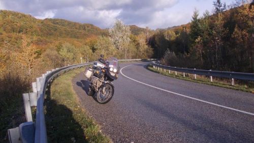 Máme před sebou nejtěžší a nejdelší etapu, večer musíme dojet ke Štefanovi do Sniny. Jen si přejeme, aby měl dobře vychlazené pivo, nebo náš fakt naštve… Projíždíme mlhou a napadá nás, že jsme vlastně za celou cestu nepotkali ani jednu motorku. Zvláštní… a přitom jsou plus čtyři :-). Je vlhko, mokro, sychravo a mlha, prostě ideál. Vzpomínáme s Jorem na loňské Krušné hory a je nám v tomhle prostředí fajn. Krajina působí tajemně a člověk vnímá její atmosféru plastičtěji. Projíždíme Bieszczadským parkem a vnímáme podzim.