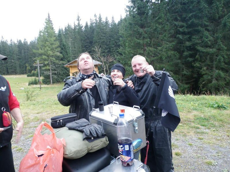 Generál vytahuje u motorek láhev slivovice a že prej, když je ta zima, je jistě i chuť. No jedna dvě se vlezou a než se nadějeme, je tady dno láhve... Joro vytahuje na revanš „Hore dole“, ale to už jde mimo nás, neboť se jdeme se Zdenym a Rendy ubytovat, dáváme spršku a vyrážíme na malou procházku po okolí. Generál s Jorem vedou debatu u motorek. Mají právě nějaké důležité téma, a tak je nerušíme.