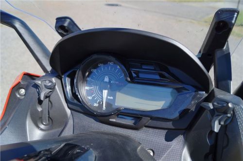 Standardní výbava zahrnuje systémy ABS a kontrolu trakce ASC (Automatic Stability Control). O zastavení stroje se starají vpředu dva kotouče s dvoupístkovými třmeny a vzadu jeden kotouč. Velmi praktická je i automatická parkovací brzda aktivovaná sklopením stojánku.