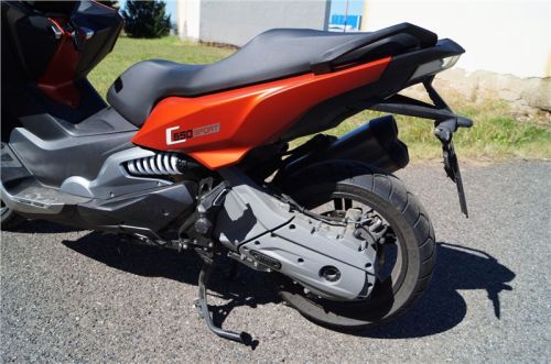 Krátký úvod do stavby celého stroje jistě stojí za pár řádek. V příhradovém rámu z ocelových trubek je vložen řadový dvouválec o objemu 647 cm3 a síle 60 koní. Variátor je umístěný hned za motorem a nezasahuje do kyvky. Síla na zadní kolo je pak přenášena zapouzdřeným řetězem. Tak jedem.