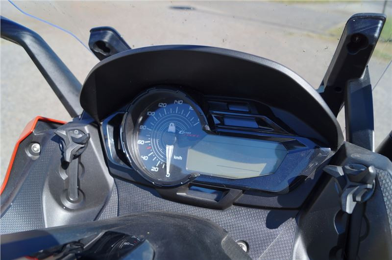 Na skútr má síly dostatek a po pražském okruhu nám to odsýpá celkem svižně. V rozjezdech to sice není odpich jako u klasiky, protože CVT převodovce přeci jen chvilku trvá, než na trase plyn-motor-kolo přenese všechen potenciál tohoto vodou chlazeného dvouválce, ale pak už se to dá švihat opravdu slušně.