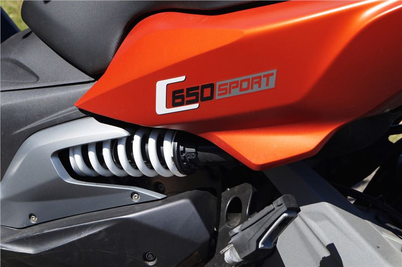 Jak píše výrobce, nastavení podvozku a zavěšení C 650 Sport bylo navrženo kompletně znovu. Tuhost pružiny předních vidlic a zadního tlumiče byla snížena o 10%, což dodává skútru citlivější ovladatelnost bez snížení jeho stability.