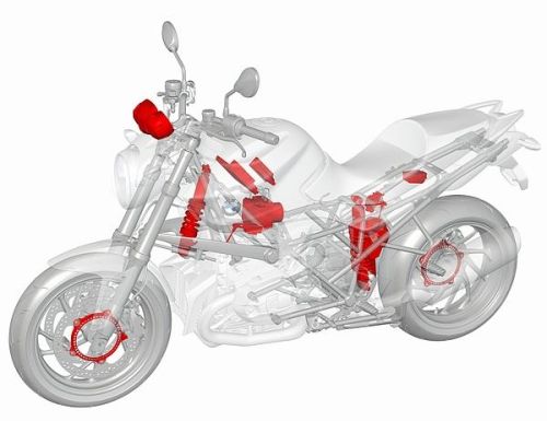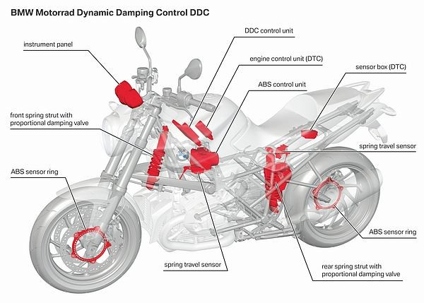BMW vyvíjí systém s názvem Dynamic Damping Control (DDC), což je poloaktivní systém pružení a tlumení. Různé pokrokové podvozkové technologie jsou pro BMW typické, vzpomeňme třeba zadní vidlici Paralever (od roku 1986), přední Telelever (1993) a konečně v roce 2005 Duolever. Rovněž další podpůrné systémy si našly u BMW cestu do sériové výroby - v roce 1988 to byl první sériový ABS na modelu K1, od roku 2007 jsou motocykly vybaveny systémem kontroly stability ASC, zabraňujícímu prokluzu zadního kola a od roku 2009 kontrolou trakce Dynamic Traction Control (DTC). Co se týče nastavení podvozku, od roku 2004 je tady systém ESA a později ESA II, umožňující měnit nastavení podvozku stiskem tlačítka.
