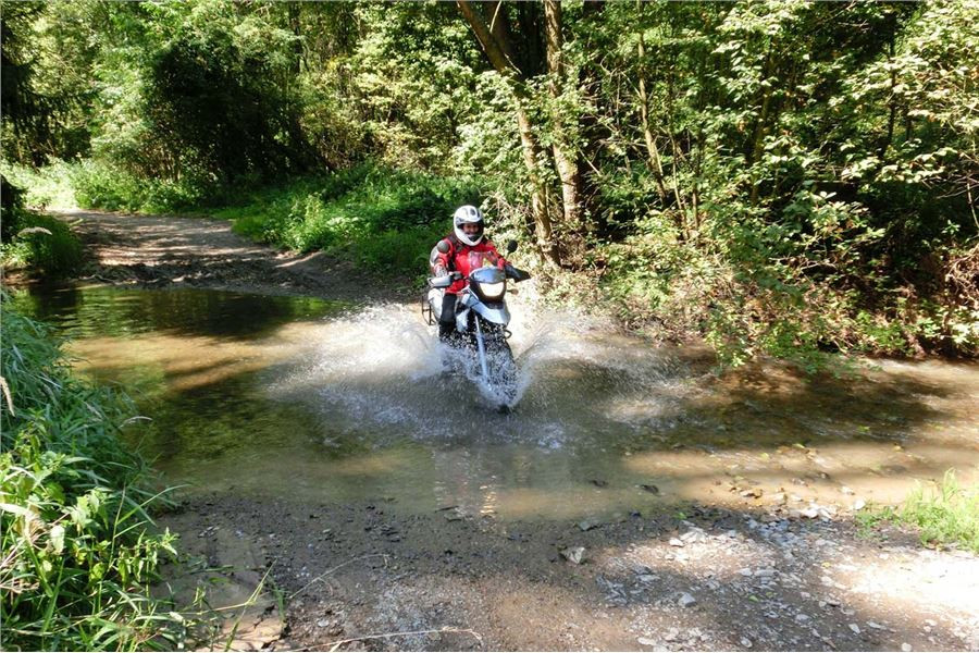 Víc než na dálnici oceníte kvality eFka na hrbolatých cestách, kde podvozek utlumí opravdu všechny nerovnosti. Pneumatiky volí majitelé často Metzeler Tourance, popřípadě do terénu Mitas E-09 a podobné tvrdší směsi, které ustojí i menší enduro vložku a i po 10 000 km je vzorek stále kvalitní.