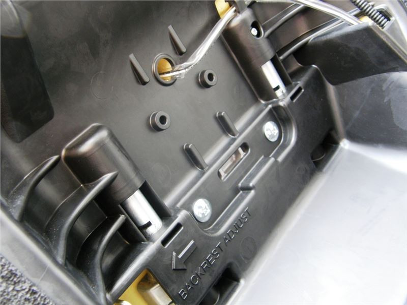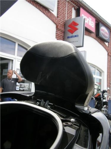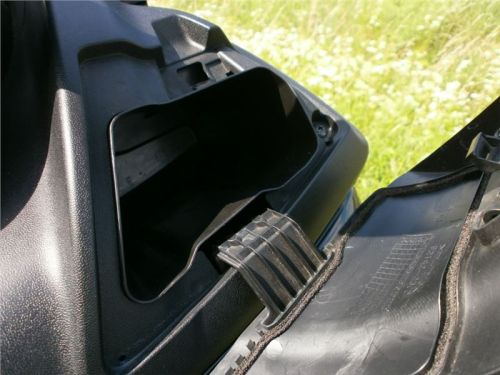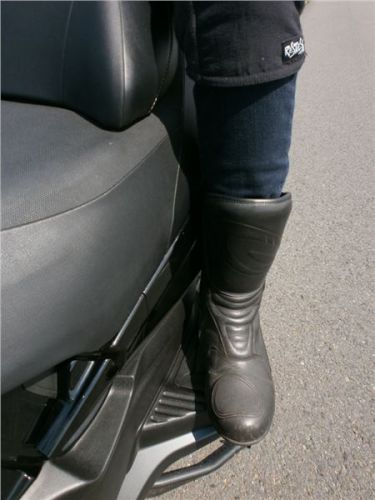 Sedadlo je pro řidiče a spolujezdce velmi pohodlné a příjemně široké. Nevýhodu by to však mohlo mít u spolujezdce s krátkýma nohama. Jednu výtku bych proto měl k bočním plastům u spolujezdcových holení, kdy svým vyboulením do stran mohou (zvlášť při fakt velkých nohách) omezovat kontaktní prostor s chodidlem spolujezdce a stupačkou. Jinými slovy jej díky tomuto vyboulení pohodlně celý nevyužijete a nohy budou zbytečně roztažené – viz foto „Burgman (3) – stupačka“.