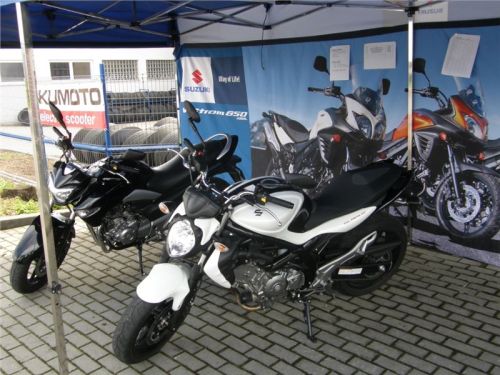 Je tady Gladius 650 ABS s dvouválcovým DOHC 90° motorem. Čtyřventilové hlavy, dvě iridiové svíčky na válec, válce upraveny metodou SCEM (Suzuki Composite Electrochemical Material), která krom jiných pozitiv snižuje tření, je upraveno vstřikování a všechny změny mají pozitivní vliv na volnoběh, studené starty, i reakci na přidání plynu. Z časových důvodů jízdu vynechávám, dle slov majitelů z řad našich čtenářů je to však úžasně ovladatelná lehká motorka.