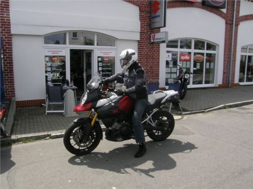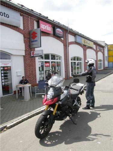 Zásadní novinku roku 2014 Suzuki V-Strom 1000 ABS budeme mít v redakčním testu, můžu však již teď říct, že je to skvělé, příjemné, štíhlé, perfektně brzdící, dobře ovladatelné a díky zkušenosti z jízdy po šotolinách kolem Opavy i opravdové enduro, byť s 19“ předním kolem.
