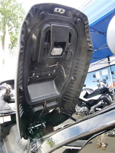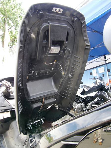 Díky novému elektricky ovladatelnému větrnému štítu vládne za řidítky Burgmana klid a mír, nesmíte však moc vyčnívat nahoru. Verze Executive má i vyhřívané rukojeti, také celé sedadlo s možností volby pro řidiče, nebo pro řidiče i spolujezdce. Nově je také v prostoru pod sedadlem s hydraulickou vzpěrou umístěna vypínatelná lampička a mechanika pro seřízení řidičovy opěrky dopředu a dozadu. Prostor pod sedadlem je poměrně velký, výrobce udává cca 50 litrů.