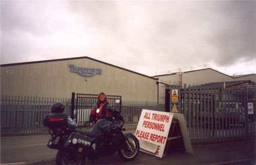 Vyrazili jsme do Anglie a nevynechali ani bránu výrobního závodu v Hinckley. Na první větší cestě jsme se důkladně seznámili. Zjistil jsem, že je to vytrvalý cestovatel, který je sice o něco těžší než jeho současná konkurence, ale zato nabízí mimořádnou odolnost a robustnost konstrukce. Na motorku se toho dost vejde, a to včetně spolujezdkyně a jejích „drobností“. Ani spotřeba není nijak závratná, tři karburátory si polknou tak 6 litrů/100 km. Časem jsem musel vylepšit nízké plexi, které, zvlášť na dlouhých přesunech po dálnici, moc nechrání. To vše byly ale nakonec vlastnosti, které rozhodly ve prospěch ponechání si Tygříka delší dobu.
