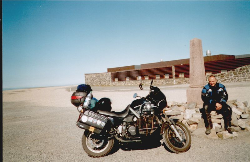 Další větší výlet jsem s přetíženým motocyklem absolvoval na Nordkapp. Před cestou jsem vyměnil olej, pneumatiky, řetěz a gumové vodítko včetně kladky na kyvné vidlici. Cesta dlouhá 9 500 km by proběhla bez sebemenší závady, kdybych si před jízdou vyměnil také brzdové destičky. Ale znáte to! Chybička se vloudila, a tak jsem sháněl součástky za polárním kruhem.