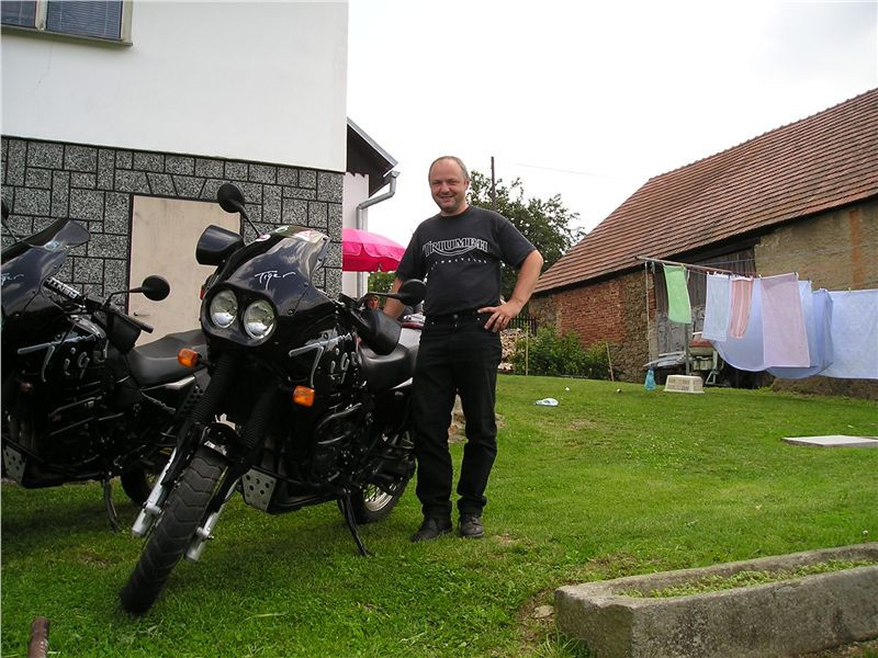 Abych to vše vyzkoušel, vyrazil jsem ještě v létě do Turecka. Vše fungovalo na jedničku a nebýt srážky s vojenským náklaďákem, nemusel jsem na cestě vůbec nic řešit. Mně se naštěstí nic nestalo, ale přední kolo na motoru a ohnutý brzdový kotouč byly jasným signálem vyhledat servis. To se nakonec podařilo a zatímco mí přátelé si právě užívali setkání příznivců značky Triumph v Hradci Králové u Honzy Kuthana, já rovnal přední vidle pod lisem jednoho tureckého servisu. Opět se ale vyplatila kovářská konstrukce stroje. Vše se narovnalo a poladilo, a tak jsem nakonec dorazil domů opět na motorce. Doma jsem jen musel ještě pár věcí poopravit a dodnes mám v kapotáži rýhu jako památku na tureckou armádu.