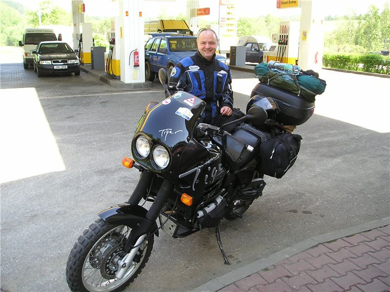 V roce 2000 jsme se potkali na vrakovišti v Německu a brzy na to stál u mě doma. Byl sice lehce nabouraný, ale podvozek měl v pořádku. Rok výroby 1997 a 17 000 km na tachometru z něj dělalo zánovní stroj. Nikdy předtím jsem neměl motorku „Made in England“ a její vlastnictví mě vlastně dostalo do malého klubu nejaponských bikerů. Dnes se to možná nezdá, ale před osmi lety bylo v naší zemi výjimečné potkat dalšího Triumpha. I nyní vyslovení tohoto jména dělá mnohým problém s jejím zařazením. Přitom tradice této značky je delší, než má o hodně známější H-D, a navíc továrna ve Velké Británii je o dost blíž. Což mě přivedlo na nápad: „Kam s Tygříkem na první dovolenou?“