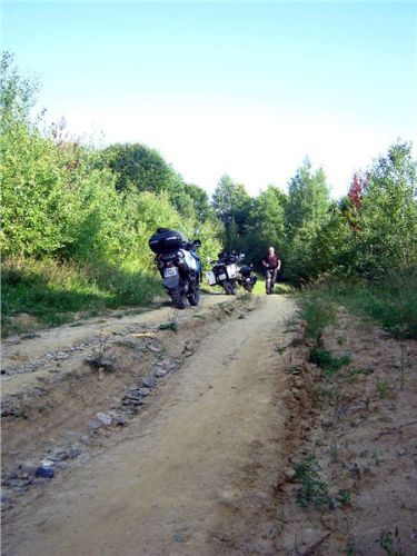 Podle jeho rezultátu pro nás cesta není průchodná. Ta správná prý mizí v lese a je nejen bahnitá, ale i značně rozrytá zřejmě lesními mechanizmy. Pro naše mastodonty a postarší neenduráky na nich konečná.