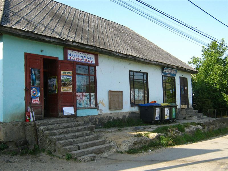 Ve Vişeu de Jos stavíme v místním koloniále na nákup nezbytností pro dnešní večer, tedy hlavně pitiva:-). Zdejší magacín je opravdu echt koloniál, kde si koupíte chleba, pivo i kolečko s maltou a přívěsným vozejkem za auto :-).