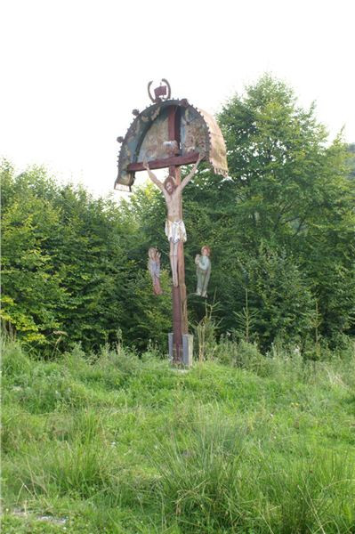 Tento areál je rozsáhlejší, navíc vertikálně členěný, takže prohlídka dá trochu větší záběr a fušku. Naštěstí, odpoledne je už pokročilé, mimoto jsme v lůně hor, tedy vedro už tolik neprudí a člověk si tak může lépe vychutnat místečko. Všude kolem je klid, nikde nikdo, takže si v pohodě užíváme detaily a různá zákoutí. Navíc, i když kostelík není otevřen, lze do něj alespoň nahlédnout okny. Z jakéhosi altánu (nevím, co to je, a nač to místním věřícím je) je docela hezký pohled z odstupu na celý areál. Nicméně, čas se nezastaví, takže je třeba se posunout kousek dále. Ještě prošmejdím okolí „nového“ kostela a sejdeme se postupně u motorek. Ani jsme je nezamykali, tady místním myslím si věříme :-).
