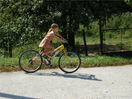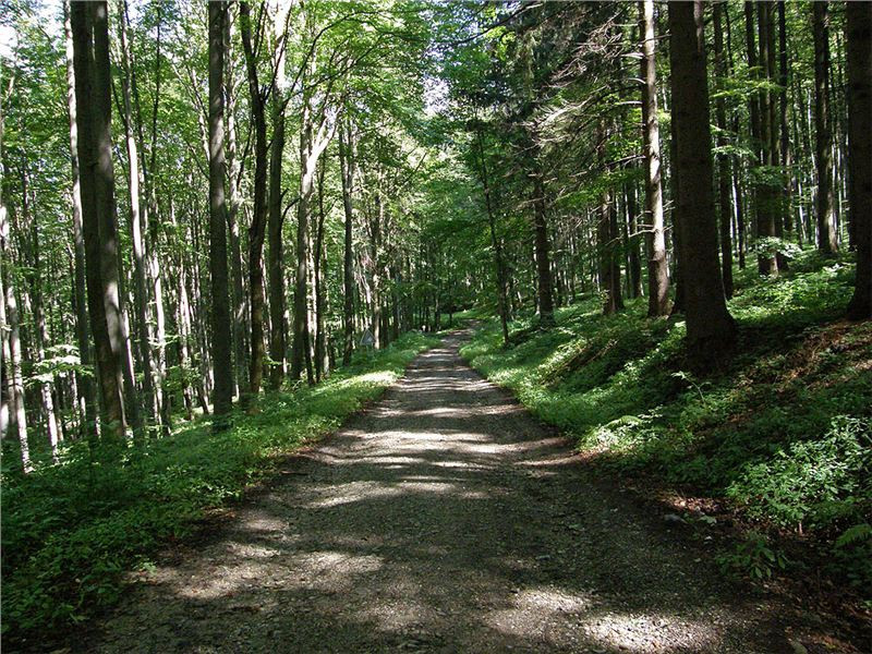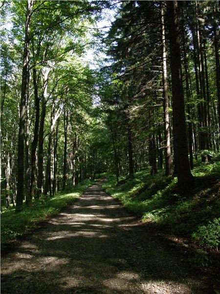 Cesta dolů je zajímavý exemplář. Pro někoho normální lesní cesta, ale jsou zde i směrovky a klasické dopravní značky, což ukazuje na silnici. Že v tom i místní nemají jasno, dosvědčuje značně hrubý verbální útok jednoho v protisměru šlapajícího turisty. Ten se na mne oboří, jako bych tu svými koly kosil stovky malých sazeniček právě vzrůstající školky, všichni se ale pohybujeme po kamenné štěrkové makadamové cestě. Navíc se snažím pokud možno pěšáky neomezit, vyhejbám se a jedu pomalu. Tak nevím, je zajímavo, že vždy se nějaký ten militantní prudič vyskytne, navíc zde, kde je důvod jeho prudění značně, ale opravdu značně diskutabilní :-).