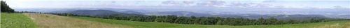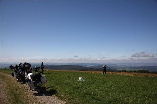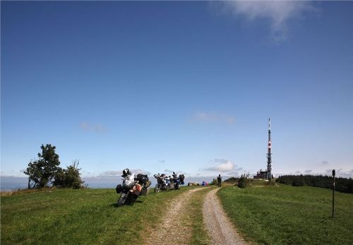Místo je to úžasné. Fantastický rozhled, obzvláště na českou (moravskou) stranu umocňuje klasická meteosituace po přechodu fronty, tedy čistý a průzračný vzduch, koldokola vymeteno, tudíž viditelnost neomezená, co naše oči a optické podpůrné prostředky dokáží. Půlhodinku se tady rozhlížíme, samo fotíme a vnímáme okolní kraj, mezitím nás předjedou naším směrem tři osobáky – dva se zlínskou RZ a jeden slovenský. Vypadá to, že se tudy jezdí normálně. Přijede sem taky skupinka cyklistů ze Zlínska, chvilku pokecáme o jejich i našem cestování, načež se taky začnou spouštět na „svoji“ stranu. Takže je necháme poodjet (i když asi budou rychlejší než my) a pomalu pojedeme taky. Přeci jen, je jedna a dost toho před sebou máme.