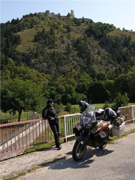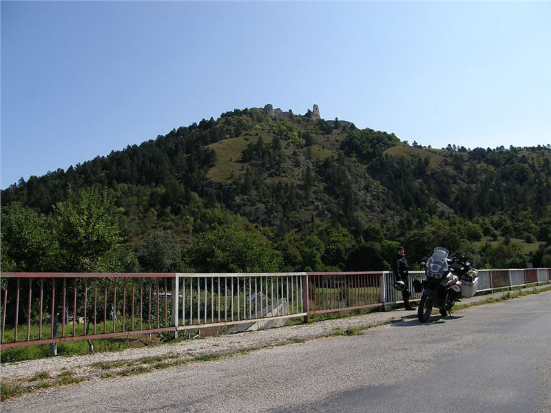 V Horné Stredě odbočíme z hlavní údolní komunikace vlevo a dáme se zapadlými okreskami na cestu k pohraničnímu hřebeni. Tady je jízda opět potěšením, ne jenom pouhým plytkým přesunem. Úzká údolíčka, silnička tak na jedno auto, zatáčky kolem skalních ostrohů, žádná rychlost, ale mototuristika par excellence. Projedeme vesnicí Čachtice, objíždíme mohutný skalnatý vrch, na kterém se tyčí zřícenina známého stejnojmenného hradu. Příběh čachtické paní, naposledky mediálně (filmově) nepříliš historicky věrohodně zpracovaný, zná asi každý, takže se zde o něm nebudu šířit.