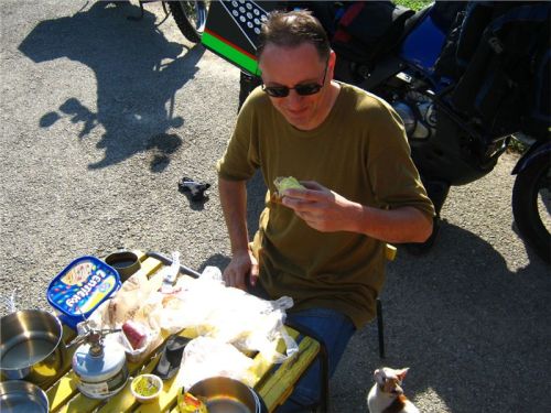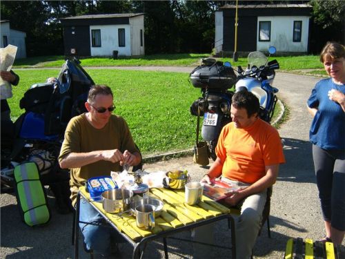 Vlčkovi venku již v plném proudu „procesují metamorfózu chaoticky rozbordeleného kempoviště v zabalený motocykl“, což je činnost, které se již pro příště milerád vyhnu a nebudu ji aktivně praktikovat. Jo, jinak se na to samozřejmě dovedu hodiny dívat :-). Stručně a česky, jsem línej a když se budu kdykoliv v budoucnosti moci bourání stanového tábora vyhnout, učiním tak jednoznačně a bez skrupulí.