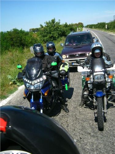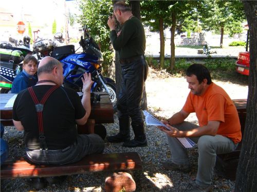 A co chybí motorkáři, když má prachy? Jo, benzín.. tedy ten se nedostává Honzovi a mně. Proto zanecháme zbylou část na místě a sami přejedeme město, než najdeme zcela standardní ÖMV a na ní standardní nabídku. Akurát nás to stojí jednu zcela na drzo projetou jednosměrku v tom nepatřičném směru. Ale místní ji před náma taky projíždí, asi zase tak o moc nešlo :-).