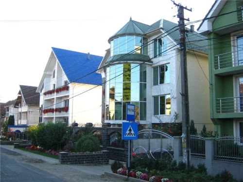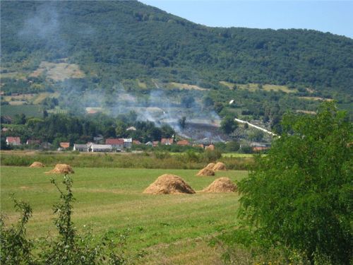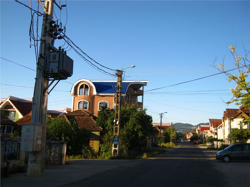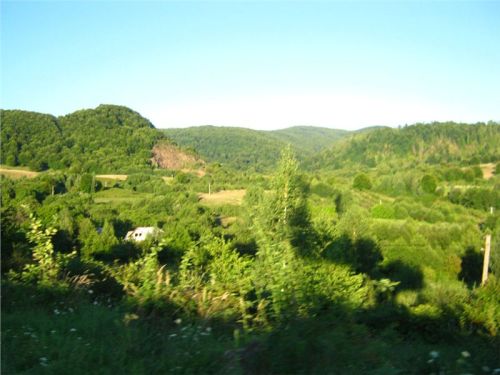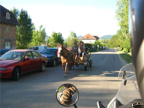 R: Především projíždíme městečkem (resp. sídlem kolem hlavní cesty) jménem Certeze. Co se tady vidí za domy, na to snad nemá ani Ukrajina. V podstatě jsou to ohromná domiska vzdáleně připomínající buď velký penzion nebo malý kostel. Nevkusné, obrovské, nabubřelé a většinou prázdné. Tedy leckdy nedokončené, ale většinou obydlené jen částečně, např. přízemí ano, tři patra nahoru už ne. Je to něco neskutečného, co si ti cikáni staví, když se dostanou k prachům. Nevím sice jak, ale z hlíny to uplácené fakt není, byť stavebníkova invence právě u hliněné chajdy se skleněným domácím oltářem zjevně končí.