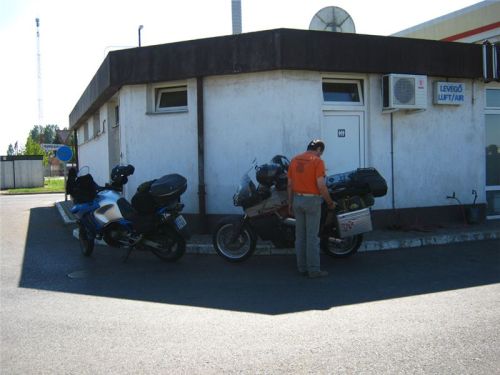 Vedro nás ale nešanuje, takže v Kisvárdě zahneme k docela moderní pumpě. Ne ani tak pro benzín, ale spíše kalkulujeme s občerstvením. Na čerpačce panuje ospalá letní nálada, posádka se mátožně plouhá od ničeho k ničemu, auta skoro ani nejezdí, prostě ospalé a žhnoucí maďarské odpoledne.