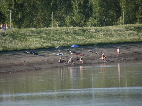 Malé sedýlko a jsme u vody. Zdevastovaná odbočka s olysalou reklamní cedulí lehce naznačí, že lepší časy má tato lokalita jaksi za sebou. A taky ano, objekt sám sice nese jisté známky stavebních aktivit, ale už dávných, nicméně dnes je to zombie jako řemen. Jediné, co zde žije, jsou rybáři na březích jezera ....