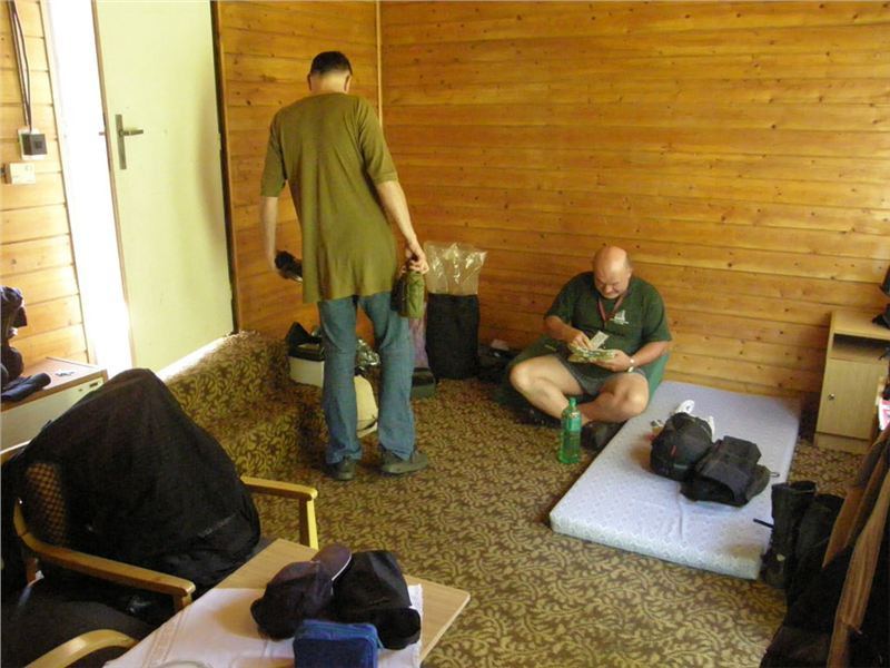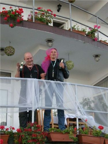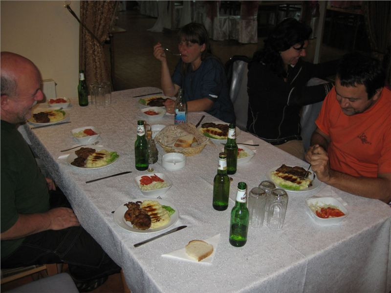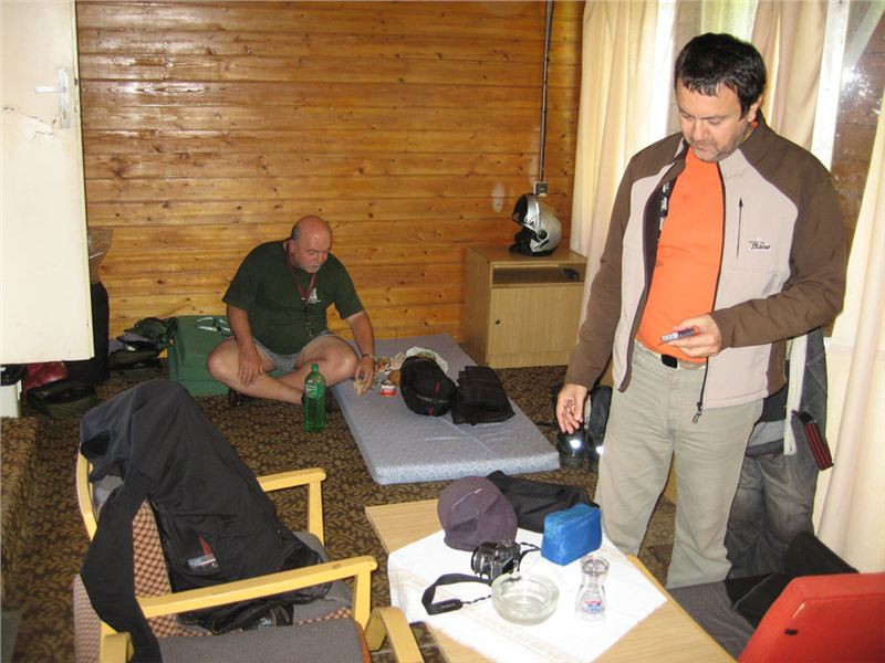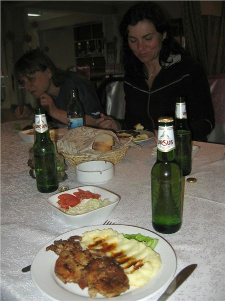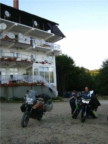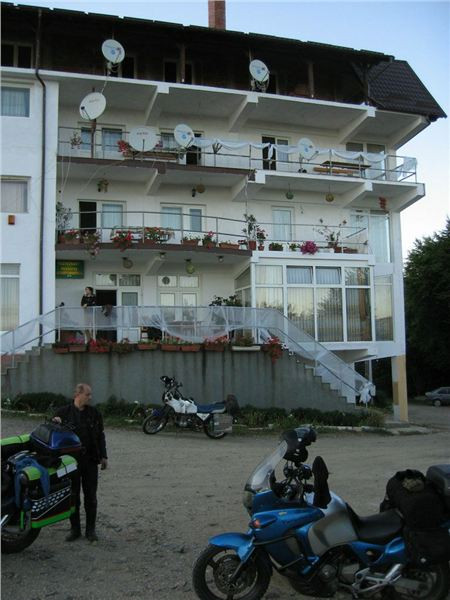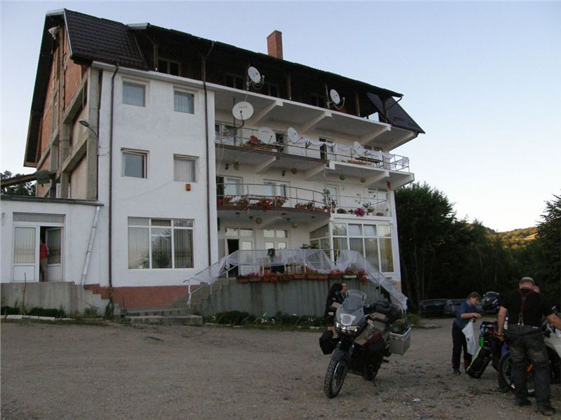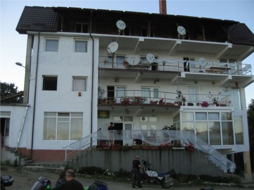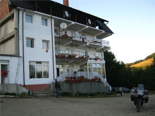 Pronikám tedy do hlavního sálu, kde se evidentně personál snaží zlikvidovat pozůstatky právě proběhlé svatby, mezitím se z hotelu vytrácí poslední svatební hosté. U výčepu sedí zdá se náčelnictvo zařízení, takže se jen tak „pro forma“ tážu na schopnost komunikace v jazyku Goethově či Shakespearově. A vida, slečna (zdá se provozní) se na anglinu chytá. Takže, ubytování jest možno? Prý ano, jestli teda nám nebude vadit, že pokoje se právě uklízí a mohou být pro nás připraveny tak za půlhodinku. Ok, to by nevadilo, tak ještě cena. Prý 50,- RONů na osobu i se snídaní. Výprava zpoza dveří přikyvuje, že prej jo, takže si plácnem.