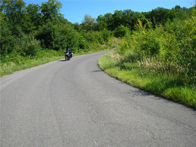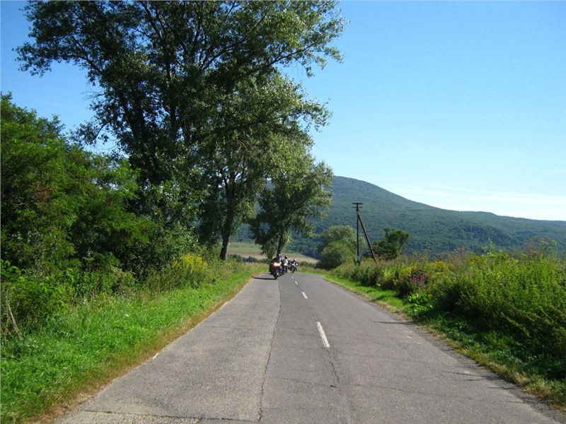 My ale k duchovní službě nezastavujeme, míříme dál. Úzká, ale kvalitní silnička se vymotá z poslední slovenské vesničky Skároš a ponoří se mezi kopce pokryté hustým listnatým lesem. V sedle se objeví infotabule a hopla – jsme v Hungárii.
