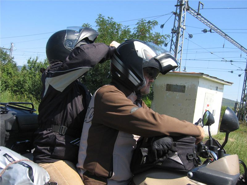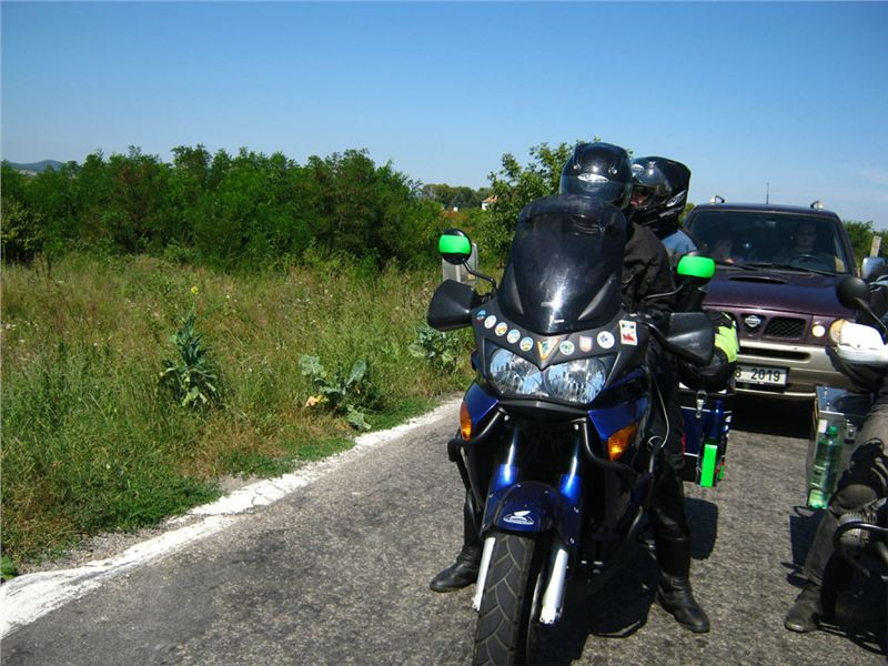 A hrneme to dál :-) Tenhle kousek puszty už není tak atraktivní jako předešlý, nicméně jak se čas posouvá, vedro trochu polevuje a jede se víceméně slušně. Drtíme to směr hranice, která ještě nese ty atributy, na které jsme jako už něco pamatující prostě zvyklí. Celníci, závory, no prostě, „staré dobré časy“ :-).