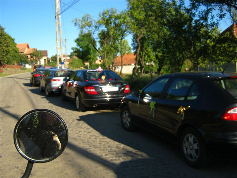Tak nic, tady motopoutníkům pšenka nepokvete, jedem dál. V nedalekém městečku Călineşti-Oas sice je podniků několik, ale všechny jsou beznadějně obsazeny svatbami. Hmmm, takovou koncentraci právě sezdaných párů jsem tedy ještě nezažil, divno, tož zase dál.