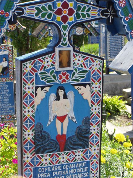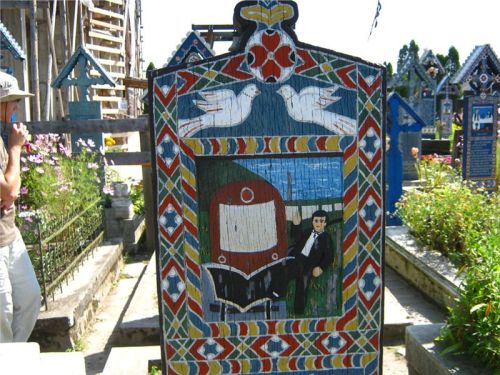 Podaří se nám ulovit volná místečka hned u vchodu, Ranža jako zdejší štamgast se přihlásí ku setrvání u strojů (přeci jen, turistická atrakce může zákonitě přitahovat šmejdy, to platí nejenom zde). No a my vyrazíme mezi malované dřevěné náhrobky.