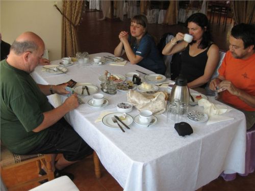 Balíme a při tom souběžně přijíždějí hosté a pořadatelé evidentně další svatby. Nedá mi to a ptám se naší tlumočnice, co že znamená takovej svatební frmol. Je mi vysvětleno, že valná většina mladších obyvatel tohoto chudého kraje jezdí za prací všudeskde po Evropě a vrací se pouze v letních dnech, v čase dovolených. No a tak zcela mimovolně se tu zrodil obyčej odbývat si svatby, křtiny a jiné významné rodinné události v srpnu. Raději jsem se ani neptal, zdali taky rodinné nebožtíky zamrazují do srpna ....