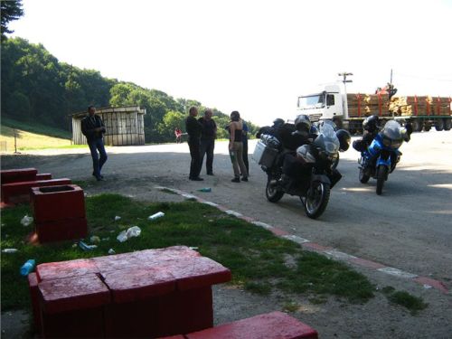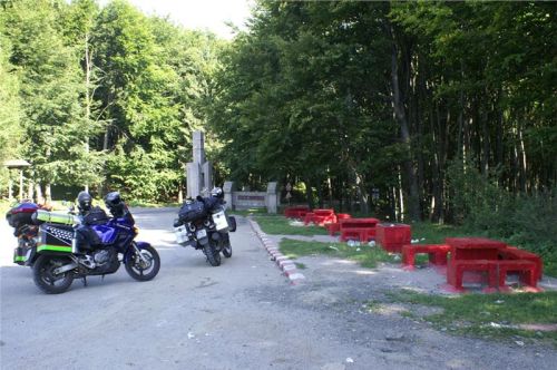 Trochu delší sjezd listnatým lesem porostlým jižním svahem údolí řeky Tiszy nás přivede k samotné ukrajinské hranici. Její přítomnost je též avizována několika hlídkovými Landrovery POLICIA FRONTIERE. Nás si ale nevšímají.