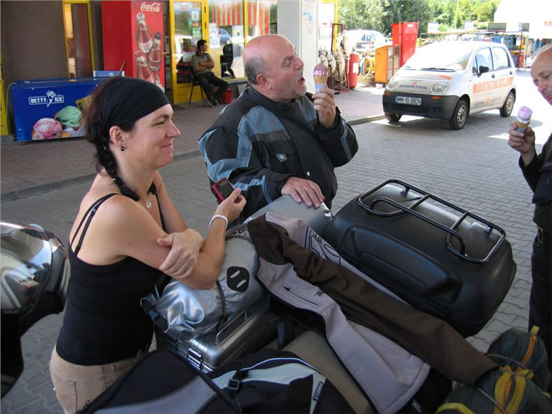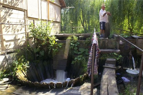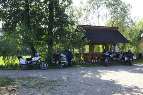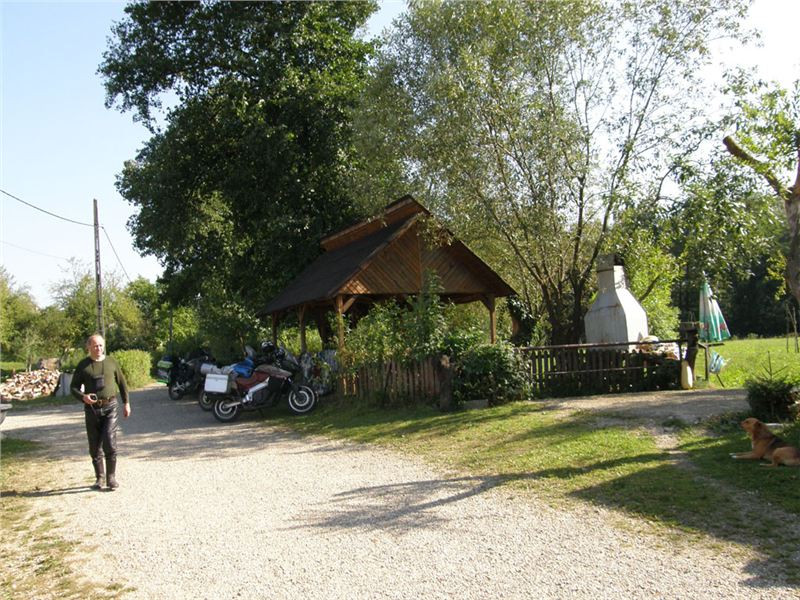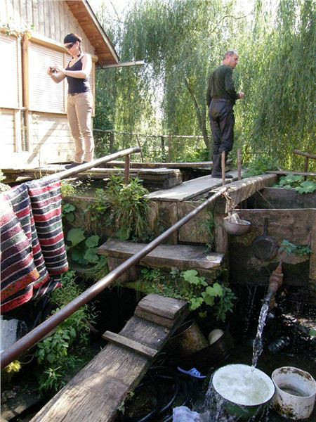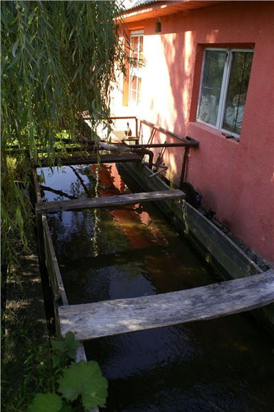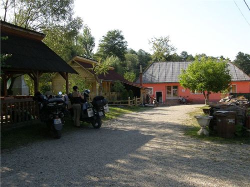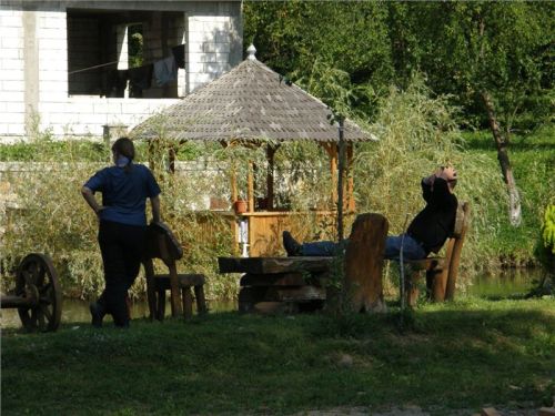 Zajímavá usedlost, na rumunské poměry nebývale upravená a útulná. Majitel má zřejmě v sobě něco germánských, pořádkumilovných genů :-). Odstavíme mašiny v příjemném polostínu na břehu náhonu a sundáme vše nepotřebné, neb vedro, sice odpolední, je stále přítomno. Naštěstí lehký vánek jej zmírňuje.