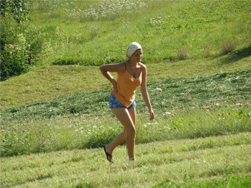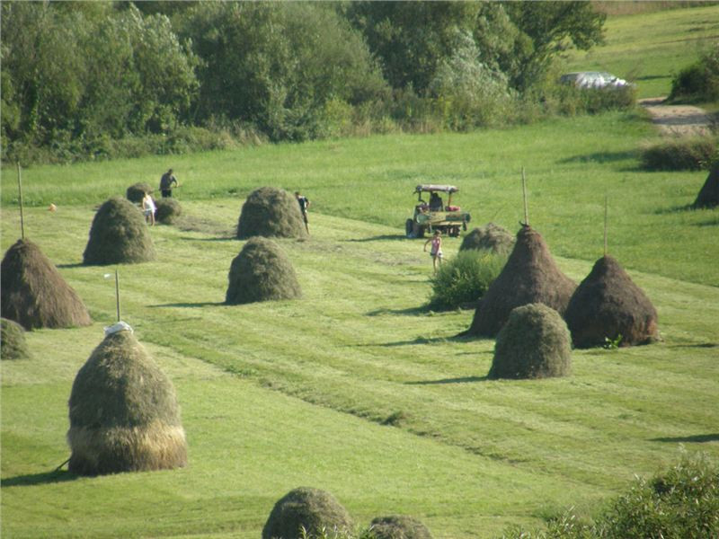 (Vsuvka: až doma při průzkumu fotek spolujezdců jsem zvěděl, cože asi je tam dole tak dlouho zdrželo – jedna mladá, fešná a festovně stavěná rolnice, kopkující seno společně s dalšími. Na fotkách je hodněkráte :-))))
