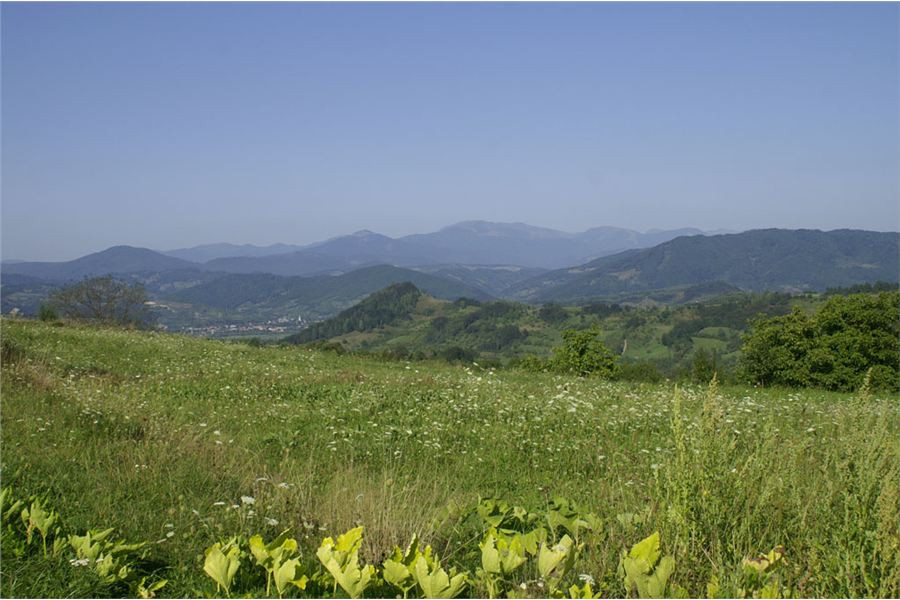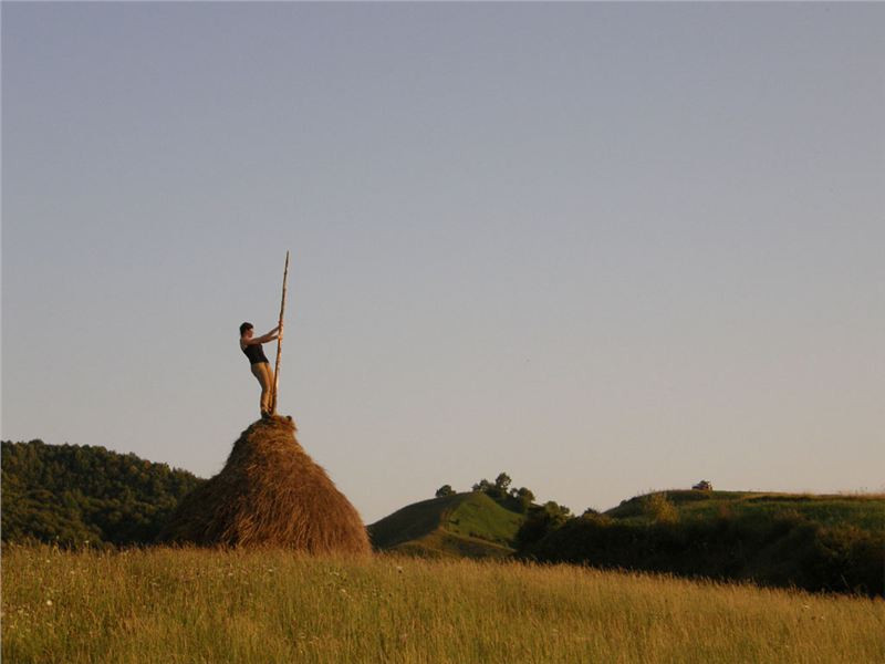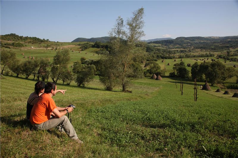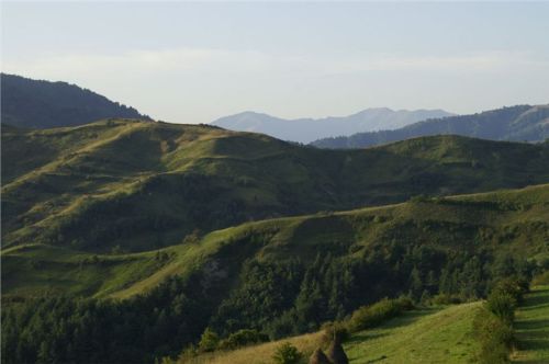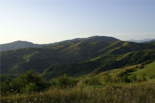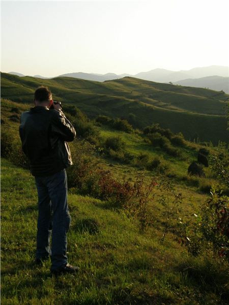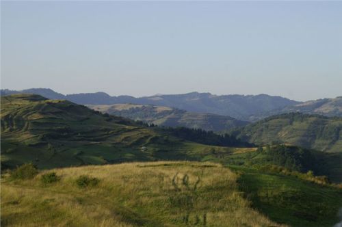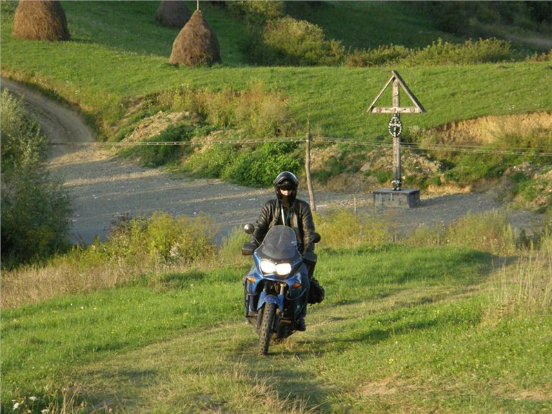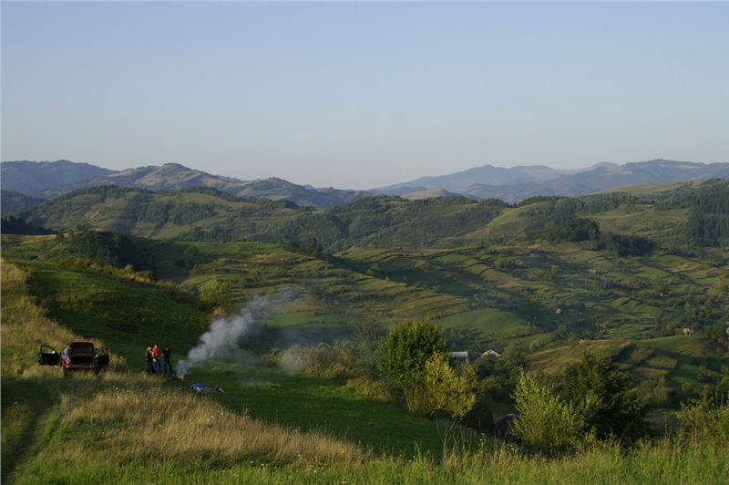 Do cíle musíme ještě překonat hřeben mezi údolími Izy a Vişeu. Poklidným podvečerem stoupáme, pod vrcholem staví Honza, no a já s ním, cože se děje? Samo nic, jen fotostop, mám jet dál. OK, sám vyjíždím do sedla a vidím, že Vlčkovi nikde, Ranža odbočil vpravo a je na louce nad sedlem. Tak tam zahnu taky, minu Swany a zkouším se dostat ještě vejš.