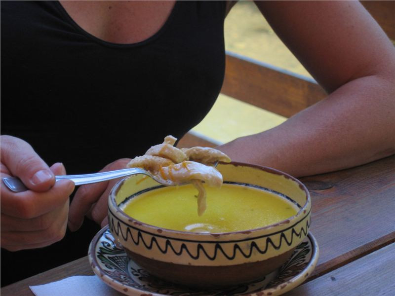 (trip), já jsem si dal polévku ze pstroužka a byla to báseň... Když k tomu člověk zakousne pečivo a polévku si dochutí smetanou (smântână), tak je o plnohodnotný oběd postaráno. Prostě, až zase někde zastavíme na polední přestávku, rumunská polévka bude jednou z uvažovaných variant.
