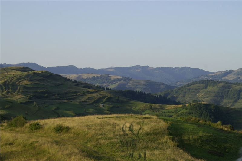 Ale je čas pohnout se dál. Z Călinesti vyrazíme spojkou na Bârsana. Náš peloton se roztrhá, Honza fotí, Vlčkovi se Swany taky zastavují, tak se do malého sedýlka vyškrábu sám. Nahoře stavím a v poklidu si prohlídnu a sfotím okolí. Všude klid a mír, nikde nikdo, akurát dvě nezletilé cyklistky si přijedou prohlídnout neobvyklého vetřelce. Ještě vyfotím kolegy stoupající do sedla a pak se rozjedu za nimi.