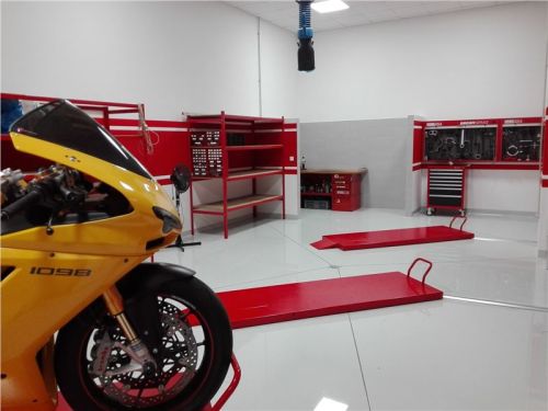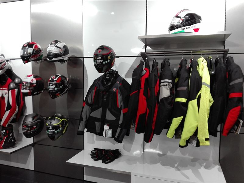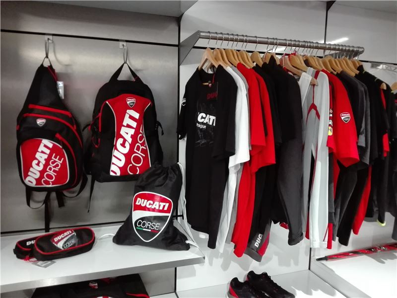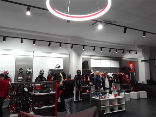 Pro letošní rok se rozšířila i nabídka příslušenství a oblečení, které lze přehledně vybírat na několika místech prodejní plochy. Plocha je nadstandardní, skvěle nasvětlená a vše je velmi reprezentativní. V zadní části objektu vznikly plně vybavené servisní prostory s nářadím, zvedáky a pneuservisem, takže nic nebrání spuštění ostrého provozu a pomyslnému zapíchnutí dalšího milníku společnosti Moto Italia.