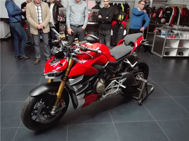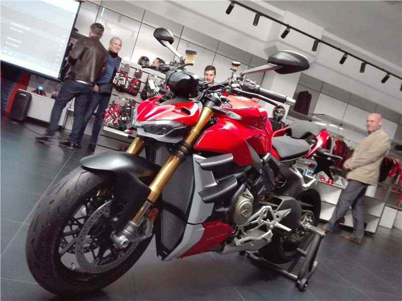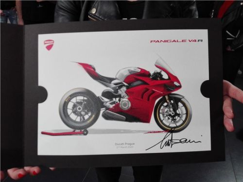 V průběhu večera byl slavnostně představen nový model Ducati Streetfighter V4 spolu s prezentací akčního ukázkového videa, fakt hustá motorka pro zkušené jezdce s chutí si jízdu užít nadivoko :-) Výkon 208 koní a 123 Nm krouticího momentu na 180 kg suché hmotnosti mluví vcelku jasně. Představena byla nabídka modelů Scrambler a velký zájem byl o závodní motorky Troye Baylisse a Marca Melandriho zapůjčené jen pro tento významný večer.