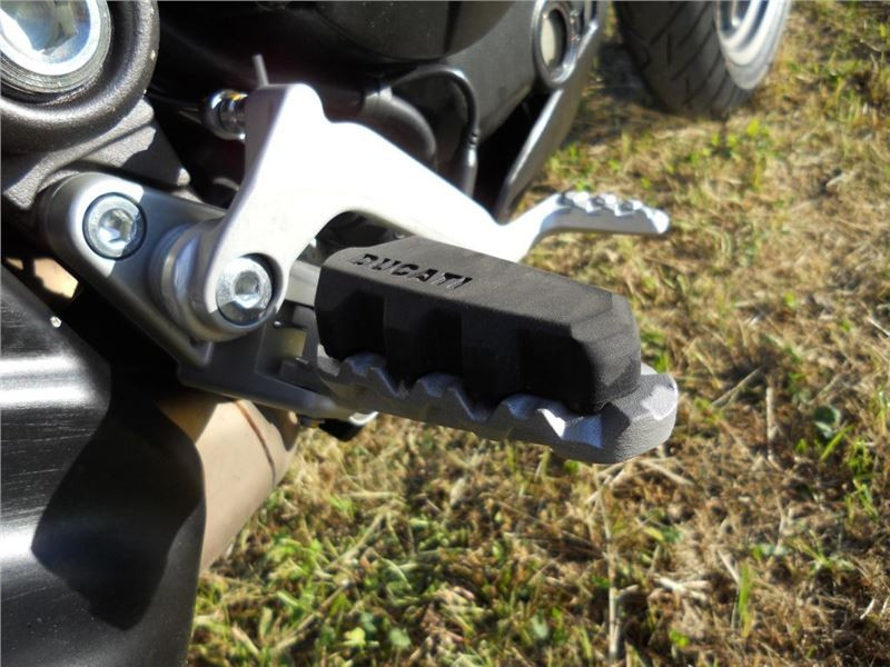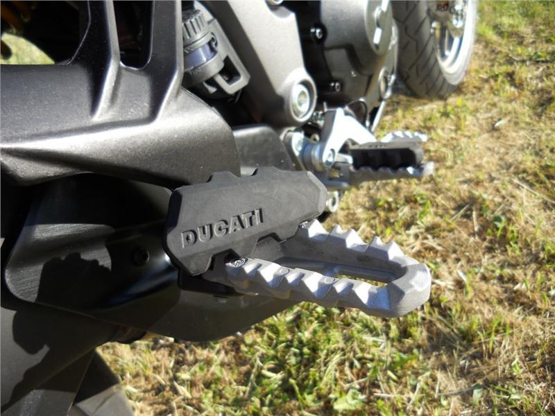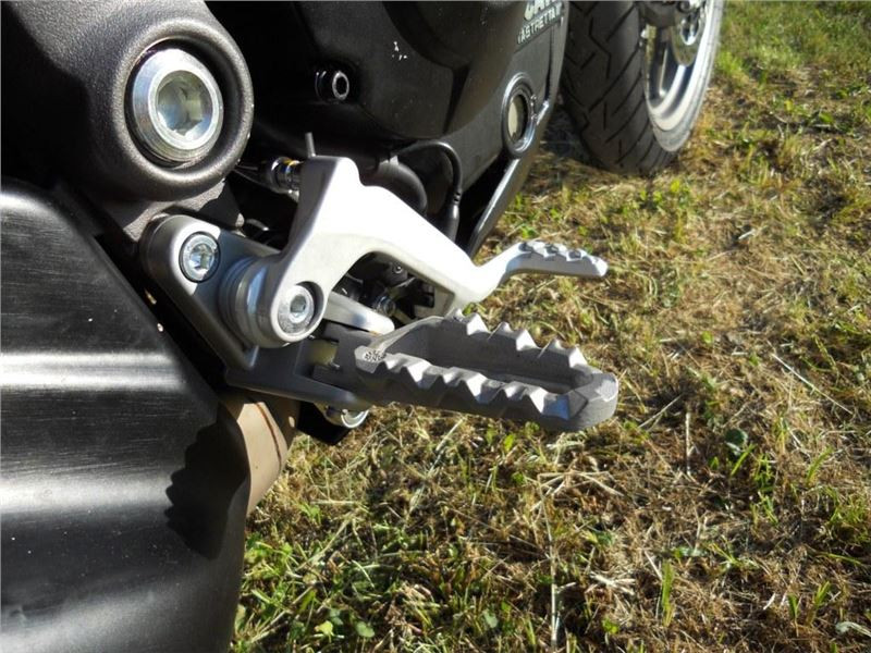 MTS950 není typický představitel motorky do terénu, ovšem po obutí vhodných pneumatik už bez dalších úprav, snad jen na podvozku a vhodným nastavením ABS a kontroly trakce, lze do terénu vyrazit zcela bez obav. Stupačky řidiče i spolujezdce mají sundávací gumy, takže ani zabahněná bota neklouže.