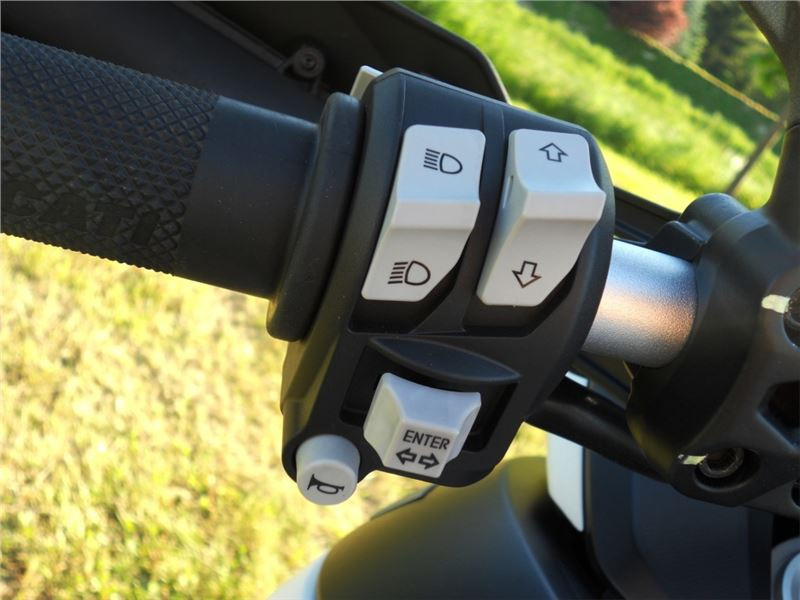 Na displeji jsou všechny potřebné informace s možností měnit si jejich přehled a hlavně si prohlížet změny nastavení jednotlivých jízdních režimů. Tak třeba režim Urban má nastaveno DTC na level 6 a a ABS na level 3. Pomocí tlačítek u levé rukojeti lze jednoduše všechna standardní nastavení změnit, nebo pomocníky úplně vypnout. Ovládání velmi intuitivní a jednoduché, za jízdy se zavřeným plynem lze pak jednotlivé jízdní režimy přepínat.