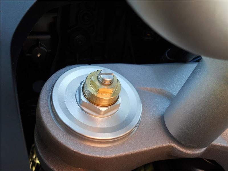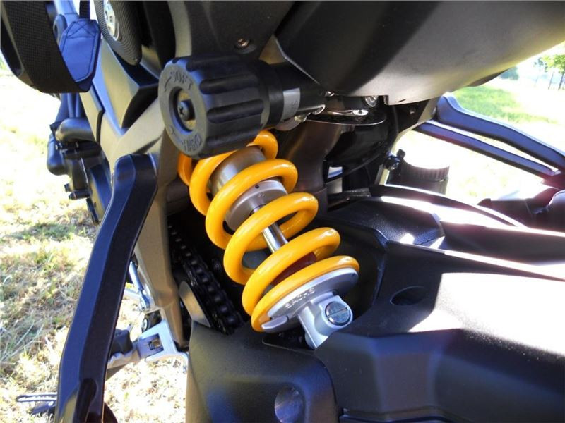 Po prvních kilometrech s pasažérem za městem jsem však nucen lehce přitvrdit, protože od novoty je nastavení více do měkka. Seřízení je však velmi jednoduché a rychlé. Manuálně nastavitelný podvozek mě hodně baví a vybrané komponenty Kayaba a Sachs jsou velmi kvalitní. Předních 19" palců nemá na ovládání motorky vliv a překlápí se stejně snadno jako dvanáctka se 17" kolem.