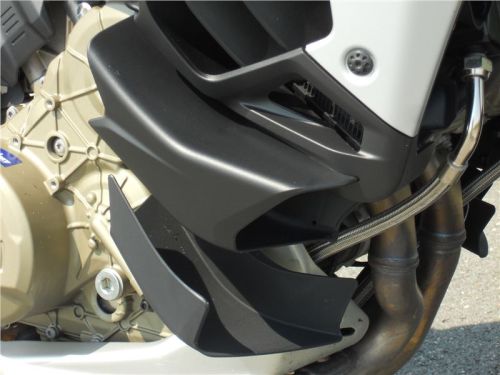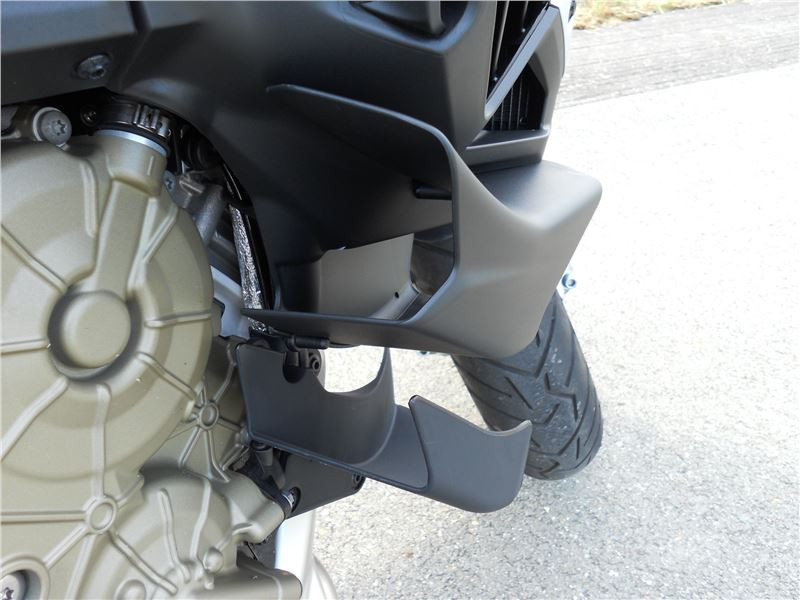 Plastu je tu docela mnoho a nejvíce zaujmou boční tvarovaná „křidélka“, jež mají zpříjemnit jízdu v horkých letních dnech směrováním vzduchu na nohy a tělo řidiče. Žraločí žábry v horní části kapotáže pouštějí teplo z pod nádrže ven.