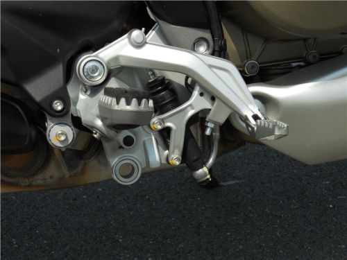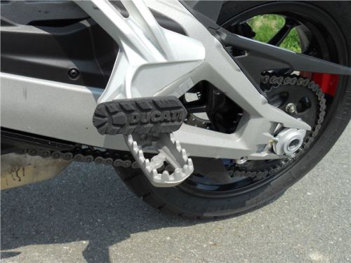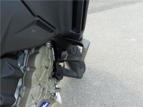 Dobře se stojí ve stupačkách, jejichž gumy (i ty spolujezdcovy) jsou snadno bez nářadí odnímatelné pro možnost „bahenního“ ježdění, kdy zůstanou jen ty ostré kovové.