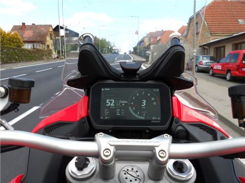 V kombinaci s novým rámem a geometrií motorka snadněji zatáčí, skvěle pracuje a filtruje všechny nerovnosti. A proto mám trochu problém, že s novou Multistradou ztrácím ty dřívější pocity z jízdy a mám menší odezvu z podvozku, což ubírá na důležitém pocitu, jak moc jedu rychle.