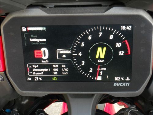Dokonce i výfuk je dostatečně vysoko, že brody nebudou překážkou. Přední zdvih 170 mm a zadní 180 mm nejsou sice typické enduro parametry, ovšem o to nová Multistrada neusiluje. Nabízí řidiči i spolujezdci perfektní svezení po silnici a velmi slušné na nezpevněném povrchu.