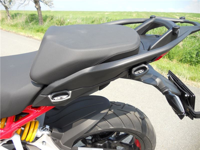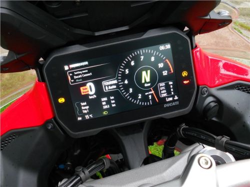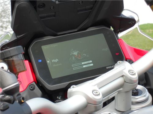 Standardní model má 5“ TFT displej, nemá Ducati Connect pro možnost zrcadlení navigace a dalších aplikací, světla nejsou úplně komplet LED, stejně tak nemá přisvětlení do zatáček a jízdu tlumí konvenční podvozek.